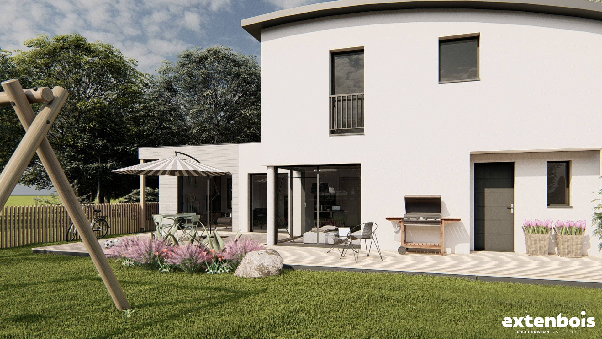 . Ce projet d’extension de maison moderne élaboré par Extenbois, spécialiste de l’extension de maison à Quimper, montre comment optimi