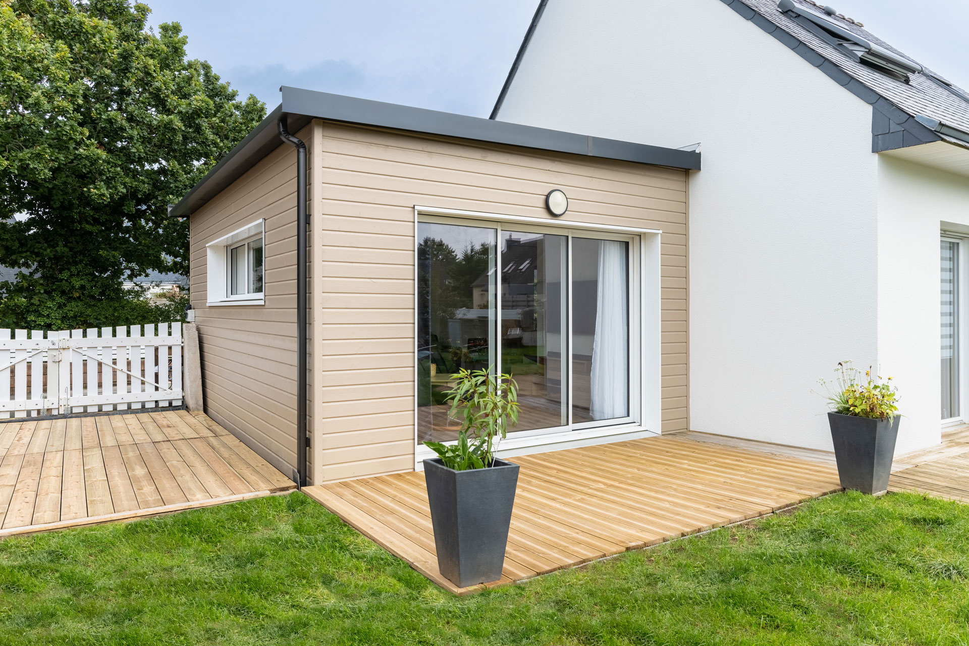 Votre extension peut accueillir cuisine, chambre, salon ou garage. L’emplacement des fenêtres et raccordements techniques sont étudiés dès la conception du projet.
