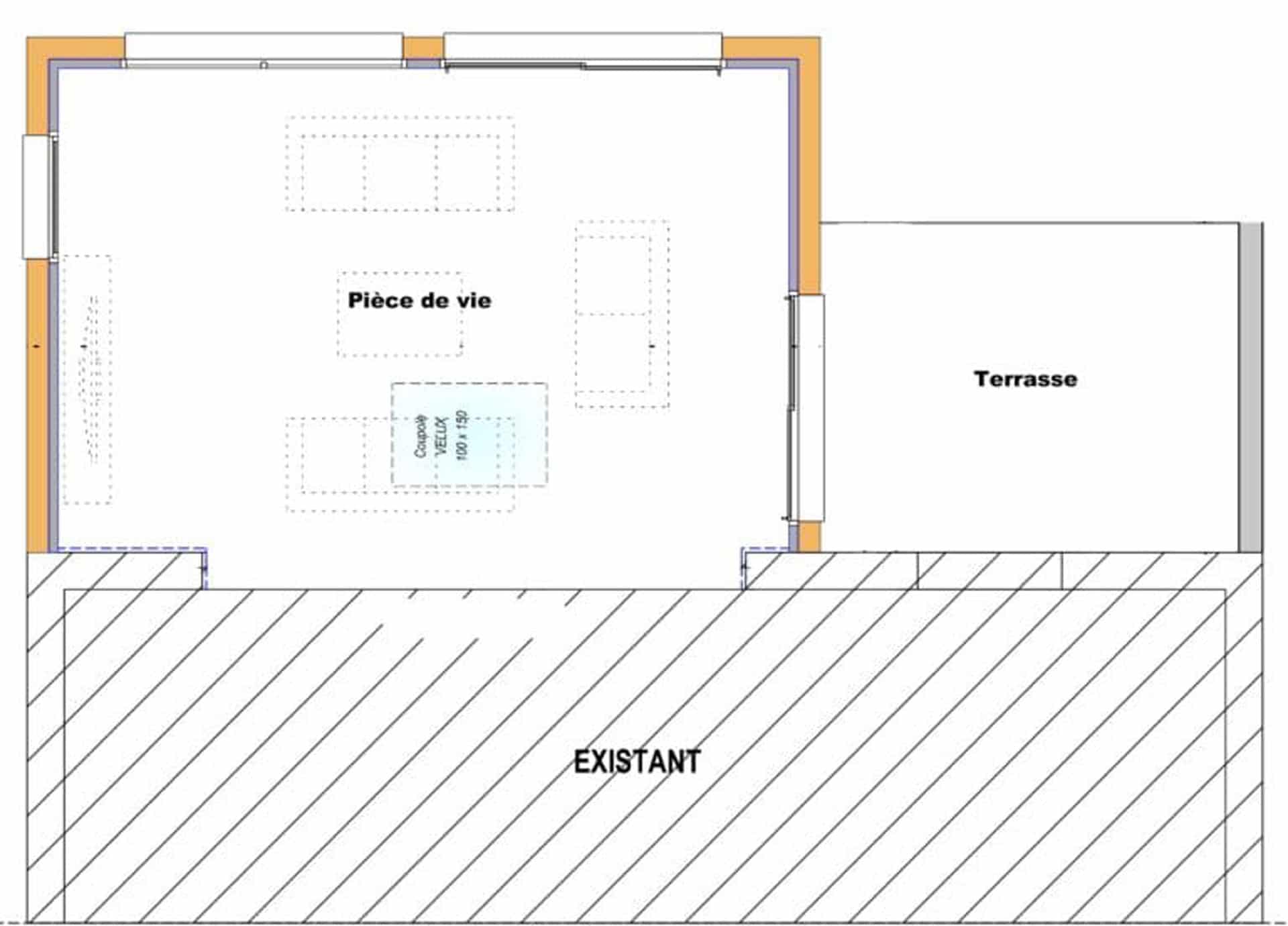 - Ce mélange de coloris rappelle les tons de l’enduit et de la toiture de la maison, pour une intégration parfaite de l’extension dans son environnement.